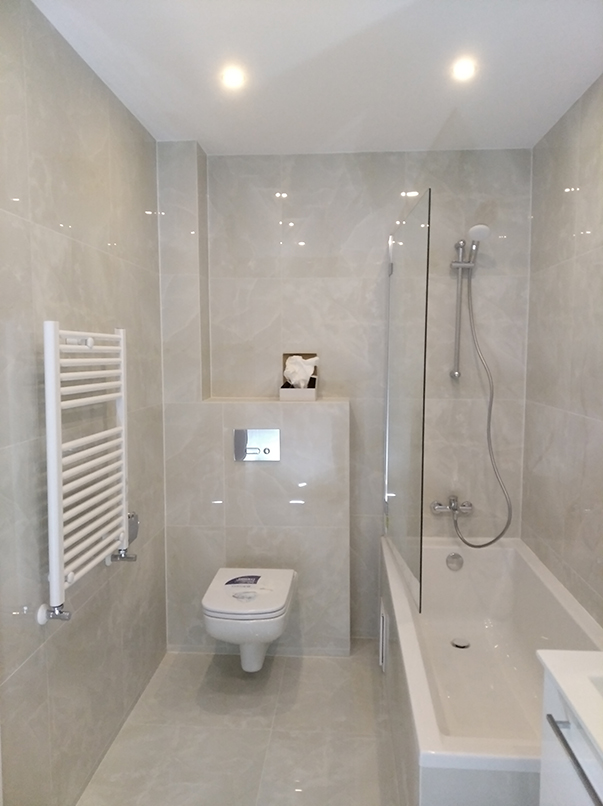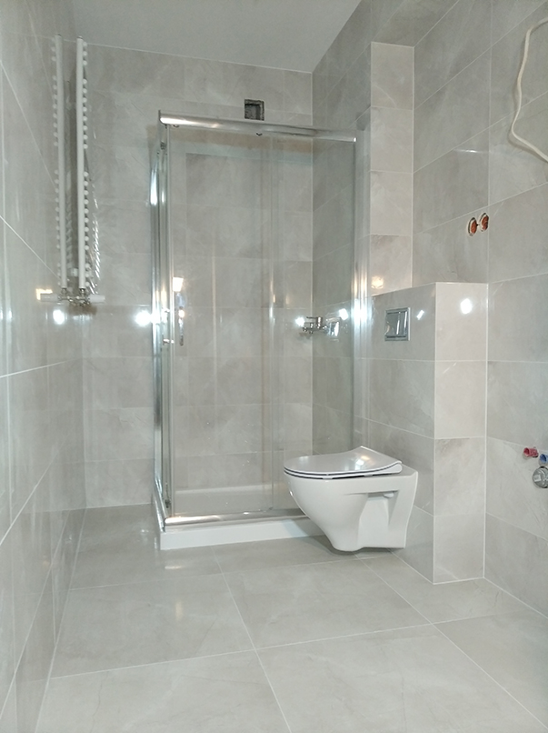 Fliesen, Terrakotta, Steinzeug, Naturstein. Badsanierung, Ausbau eines Badezimmers im Bauträgerzustand und weiteres.