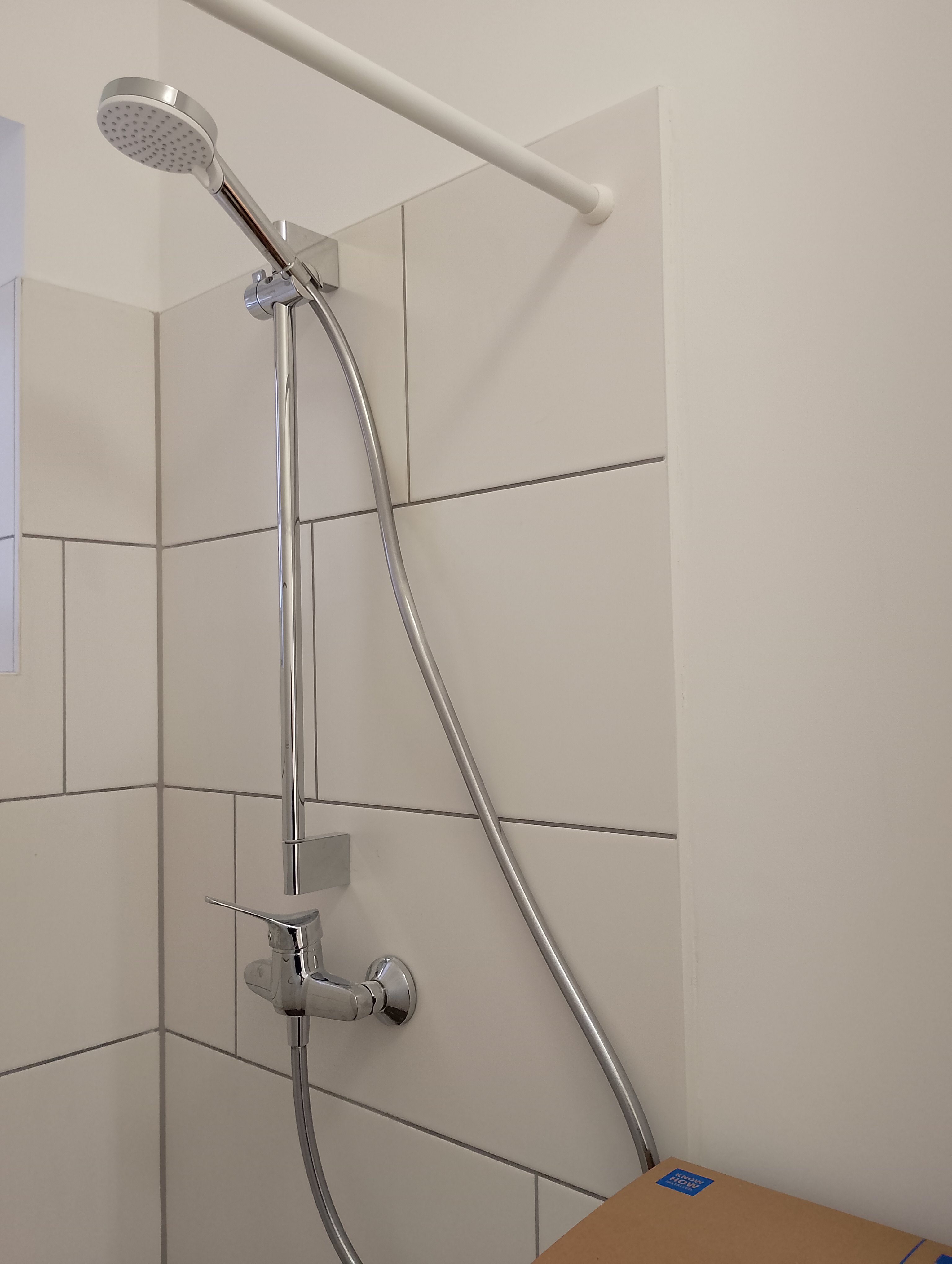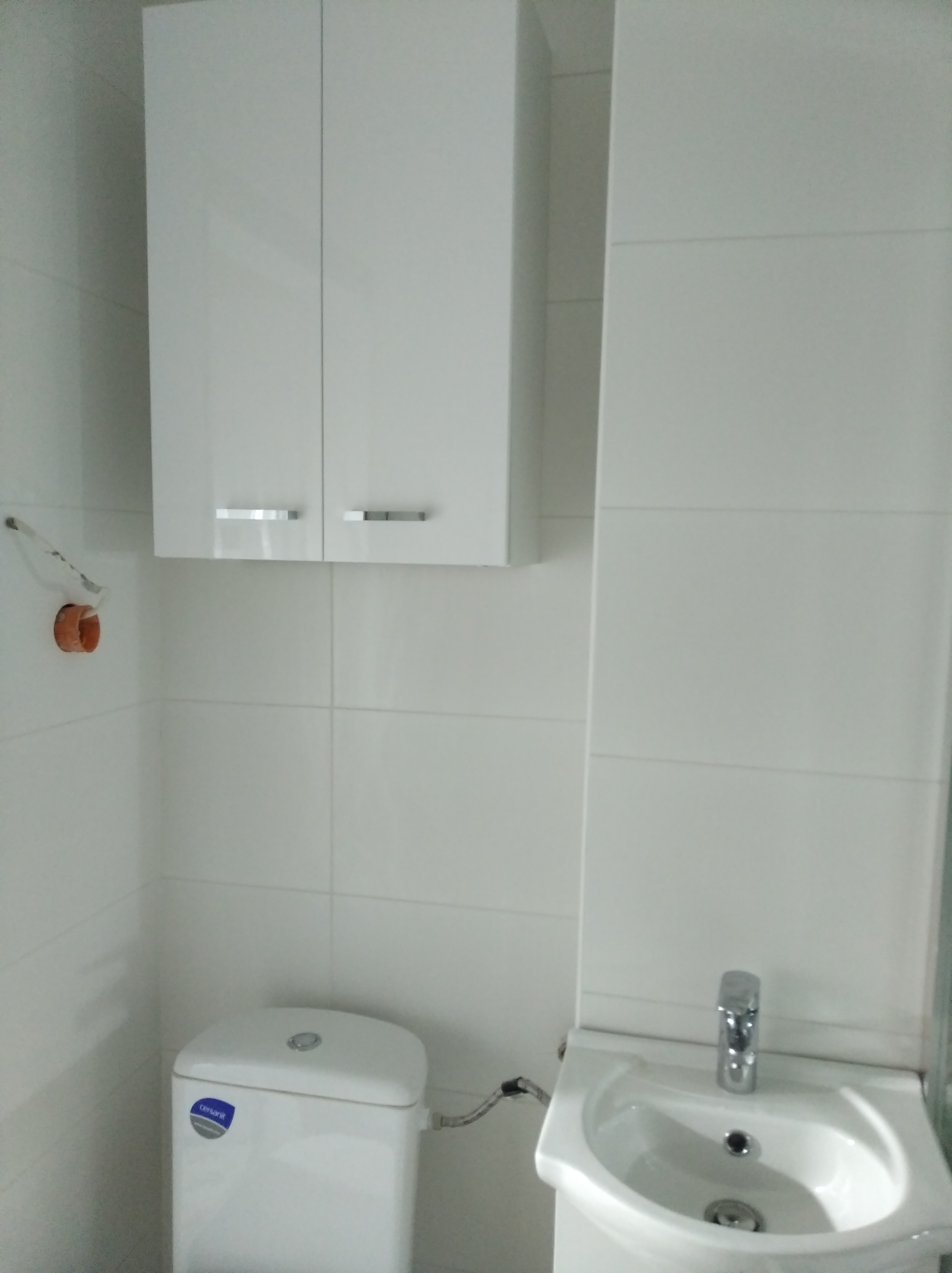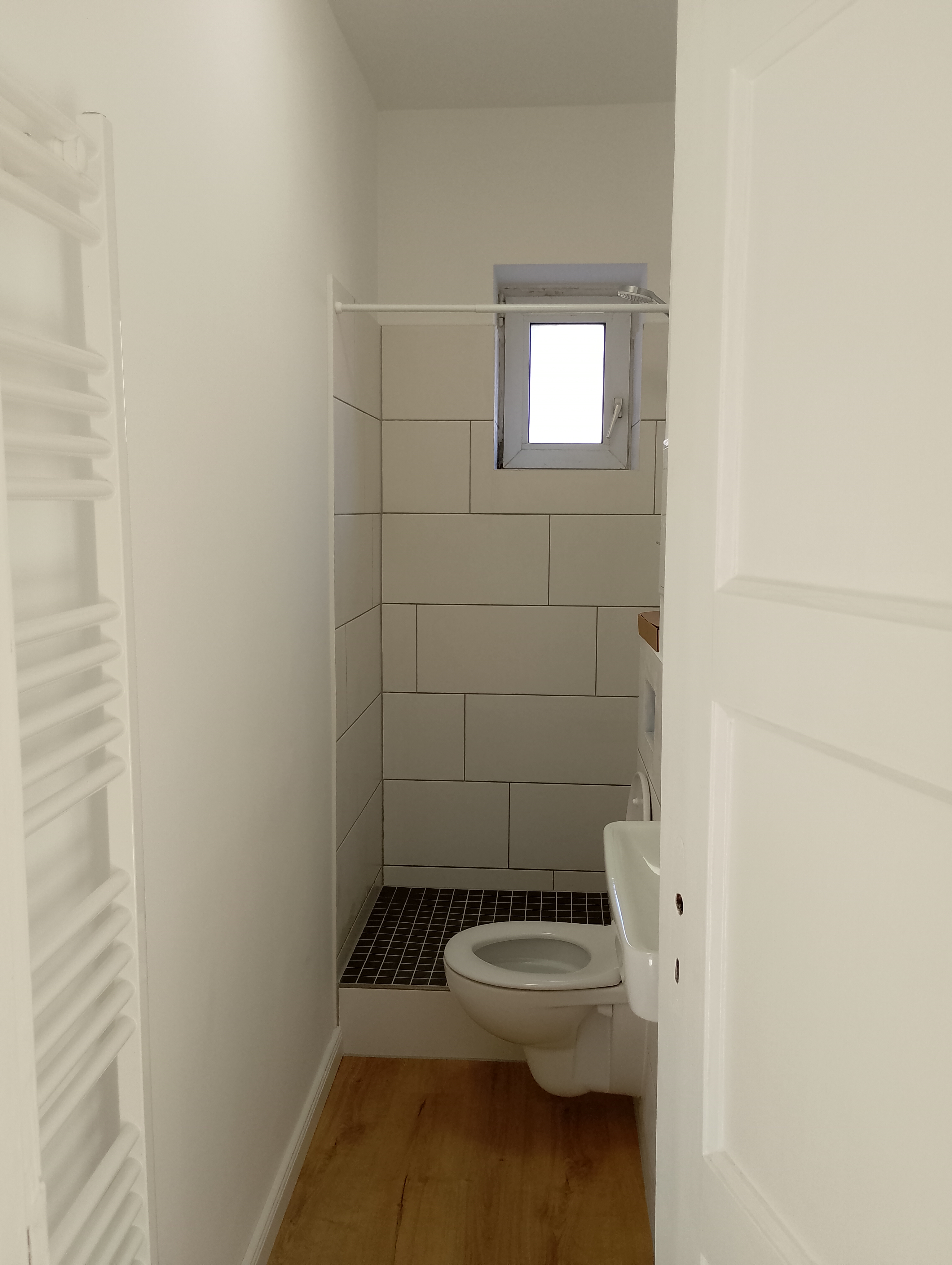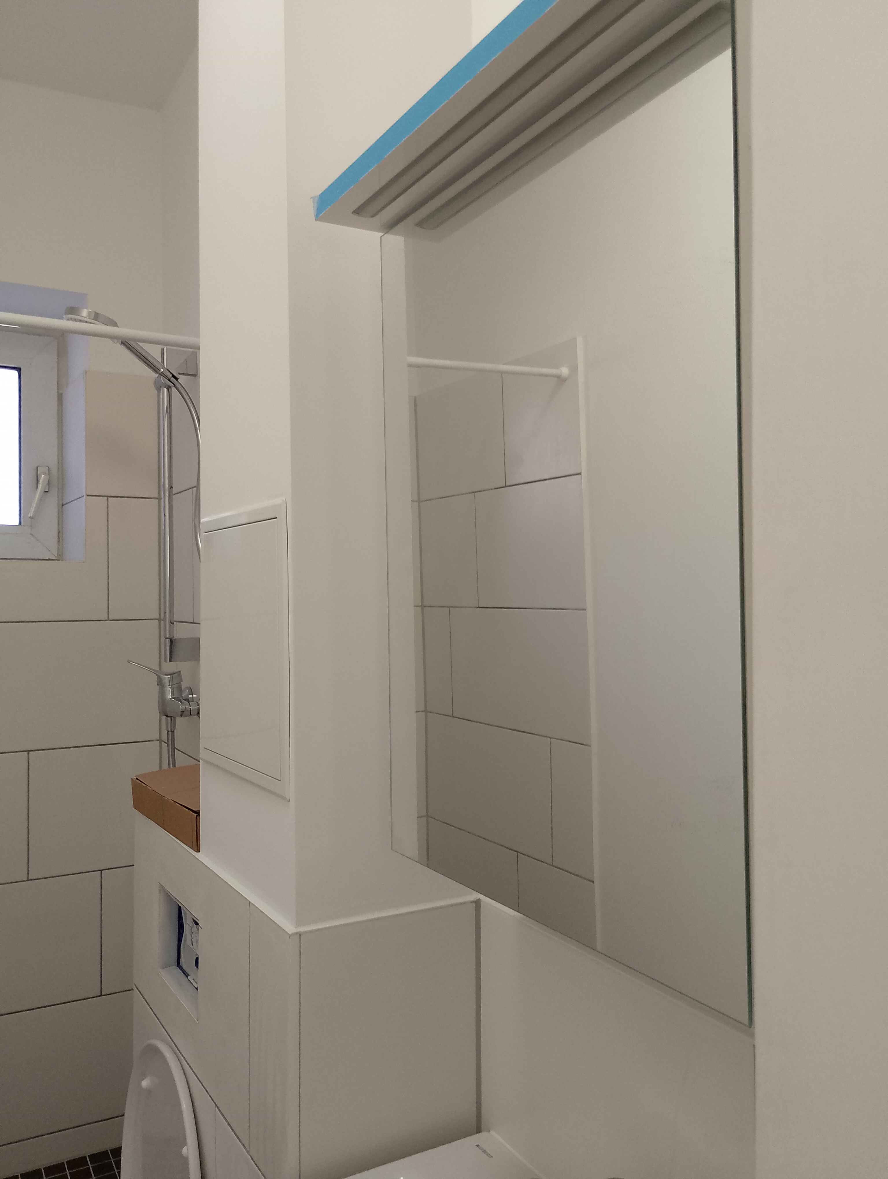 Das Badezimmer ist mit zahlreichen Haltegriffen ausgestattet, angepasst an die Bedürfnisse behinderter Menschen. Die Küche wurde mit neuen Möbeln ausgestattet. Die gesamte Wohnung ist weiß gestrichen und der Boden ist mit Vinylpaneelen ausgelegt.