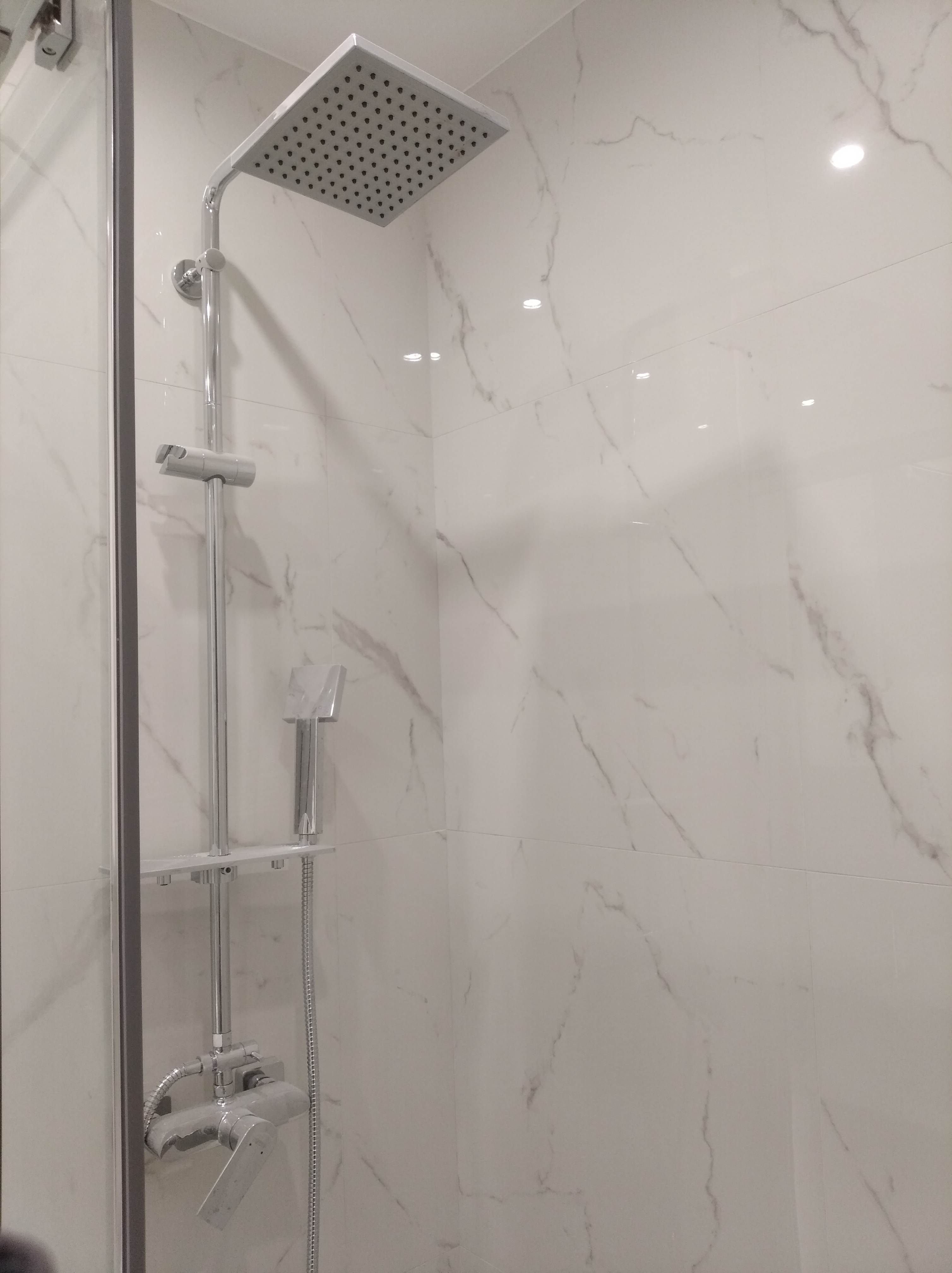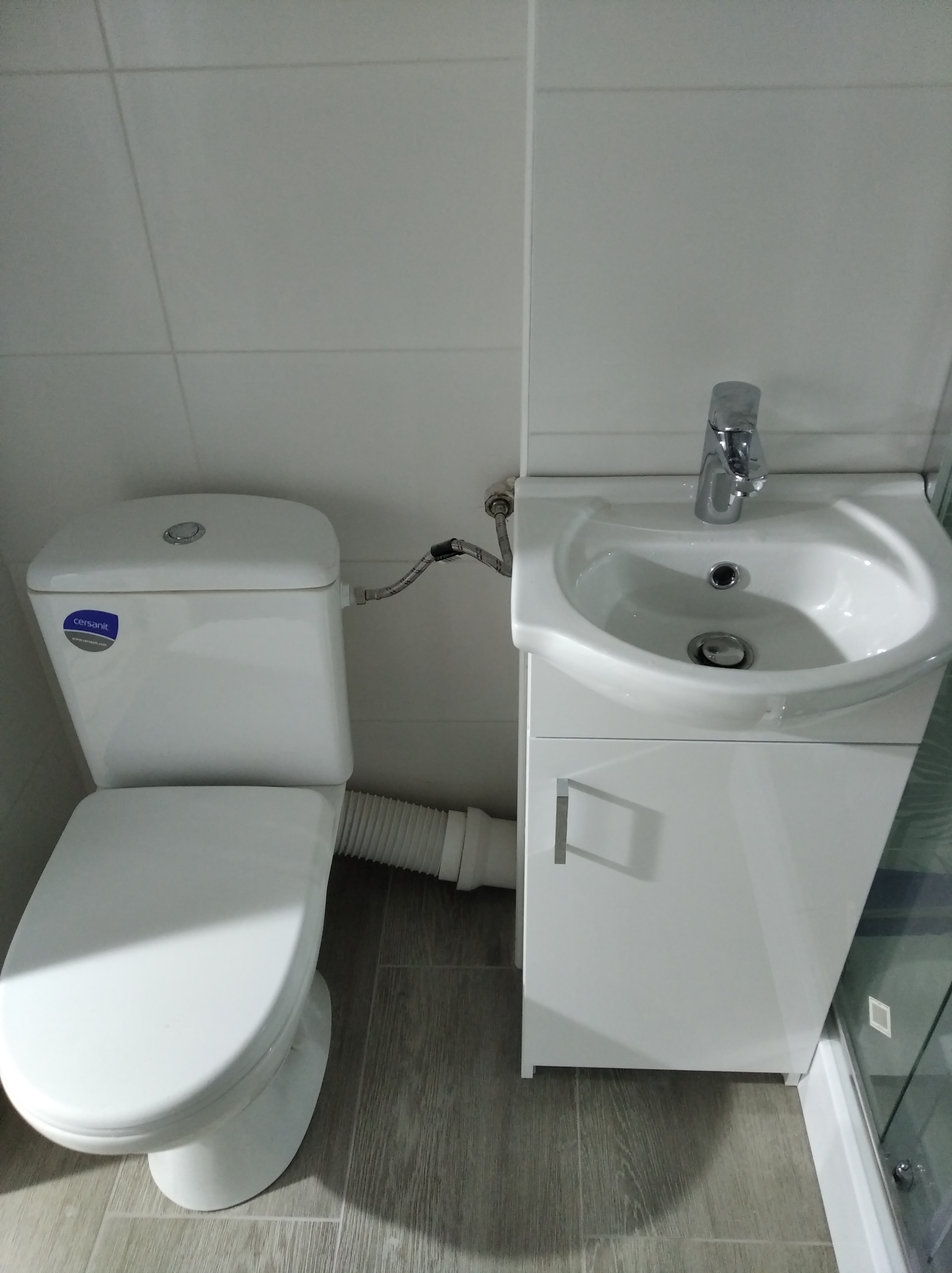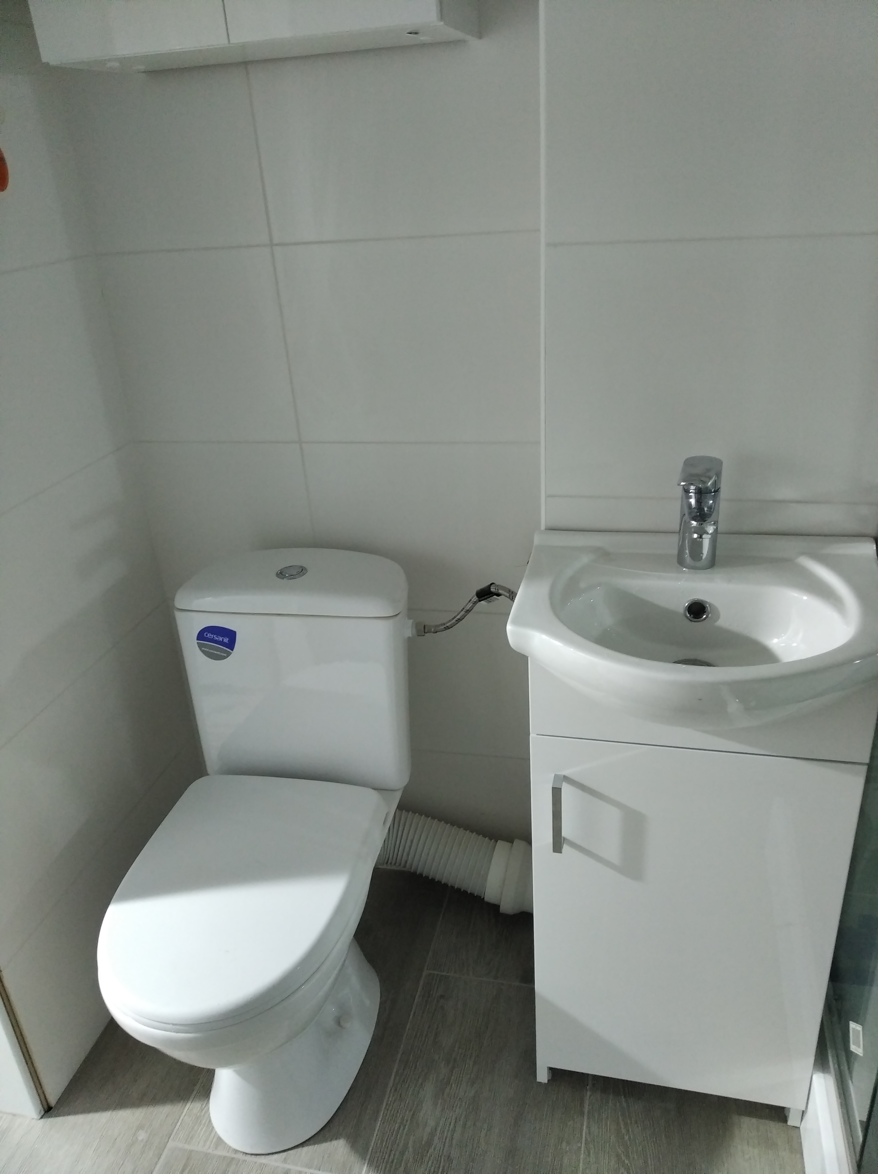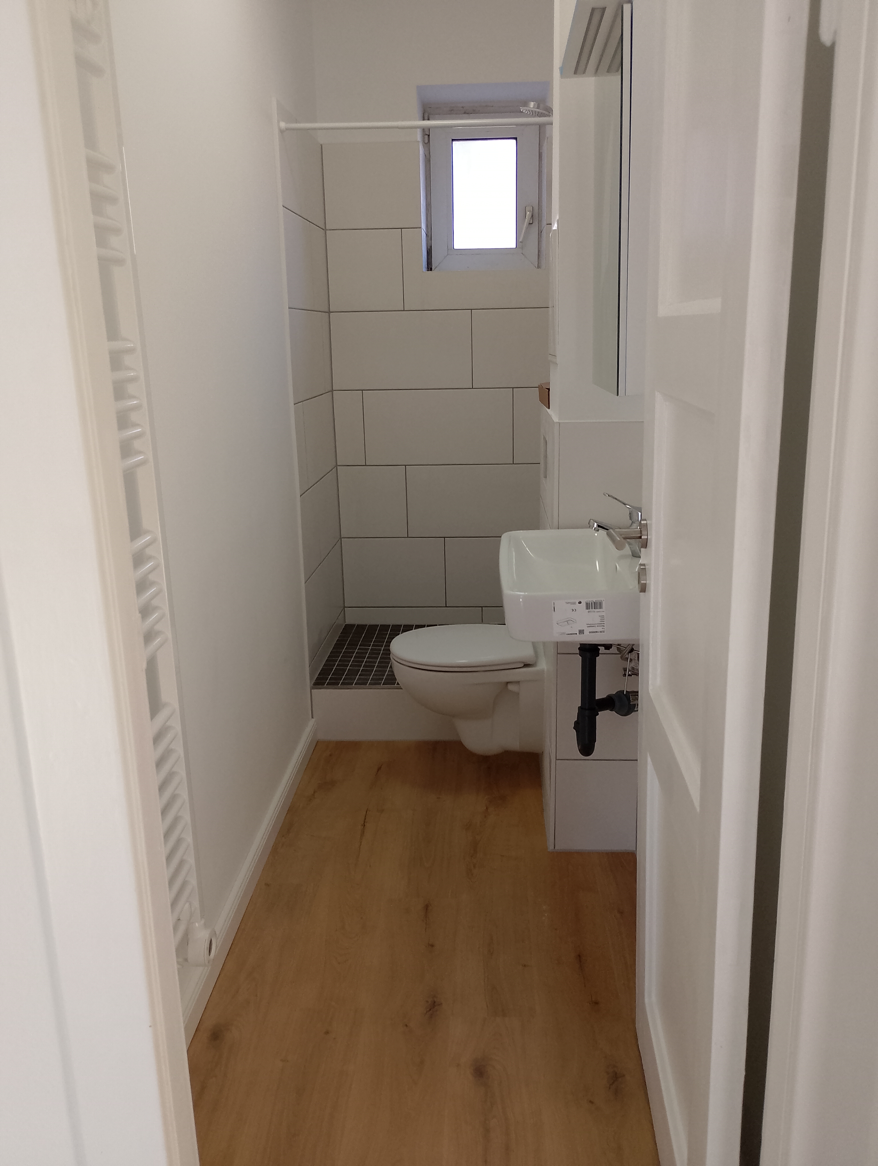 Das Badezimmer ist mit zahlreichen Haltegriffen ausgestattet, angepasst an die Bedürfnisse behinderter Menschen. Die Küche wurde mit neuen Möbeln ausgestattet. Die gesamte Wohnung ist weiß gestrichen und der Boden ist mit Vinylpaneelen ausgelegt.